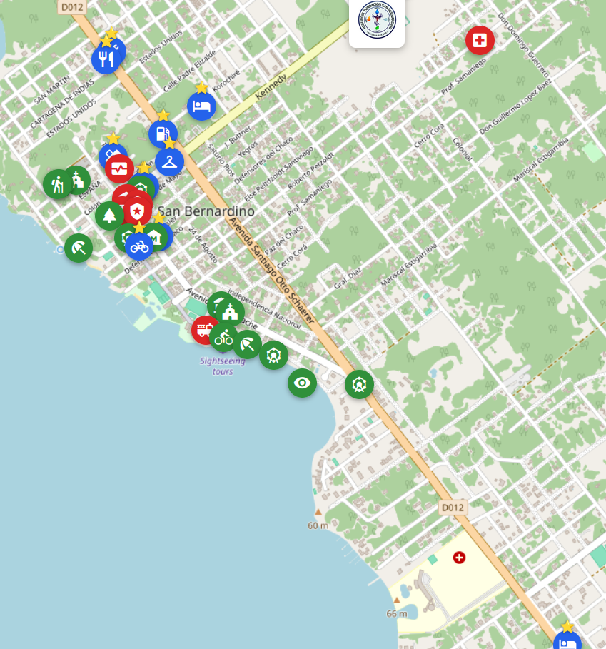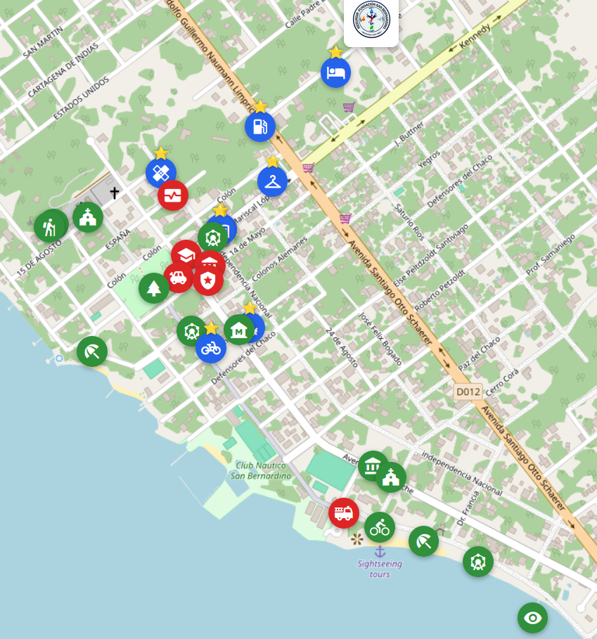Tenemos un mapa turistico para mostrar a los visitantes los diferentes atractivos turisticos, los servicios publicos de la ciudad, y el mapeo de los comercios de San Bernardino